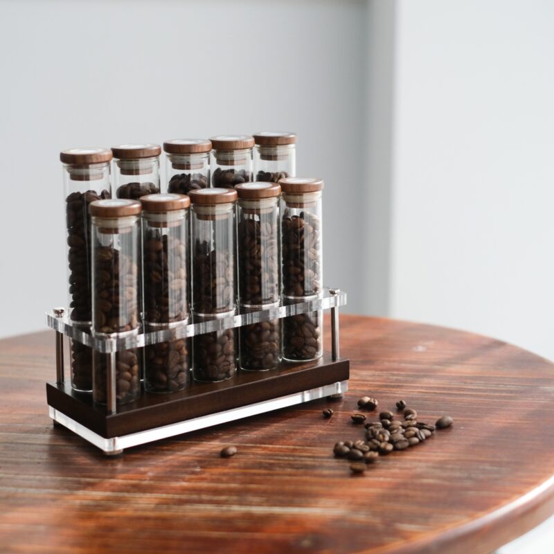 咖啡豆密封罐 22g 單向排氣閥 黑胡桃木 咖啡豆展示架 咖啡豆分裝 試管展示架 (2)